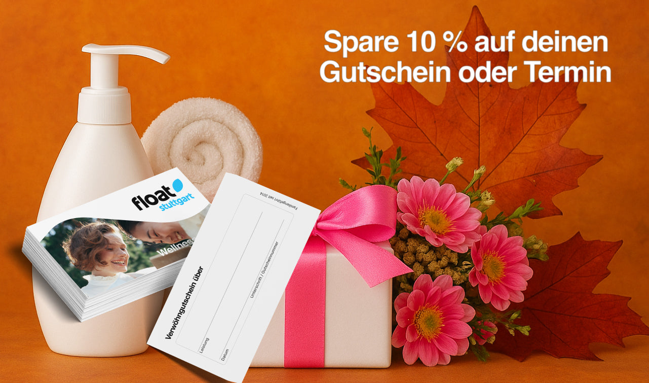 Du bist auf der Suche nach dem perfekten Day Spa Gutschein? Wie wäre es mit einem Singlefloat, einer gemeinsamen Auszeit zum Paarfloat oder einem Bundle aus Floating & Massage? Unsere Day Spa Gutscheine Stuttgart sind innerhalb weniger Sekunden in deinem Postfach und garantieren Freude beim Verschenken. In zwei Massageräumen bieten wir dir außerdem ein exklusives Angebot an Aromaölmassagen, Deluxe Rückenmassagen, Schwangerschaftsmassagen und Sportmassagen.